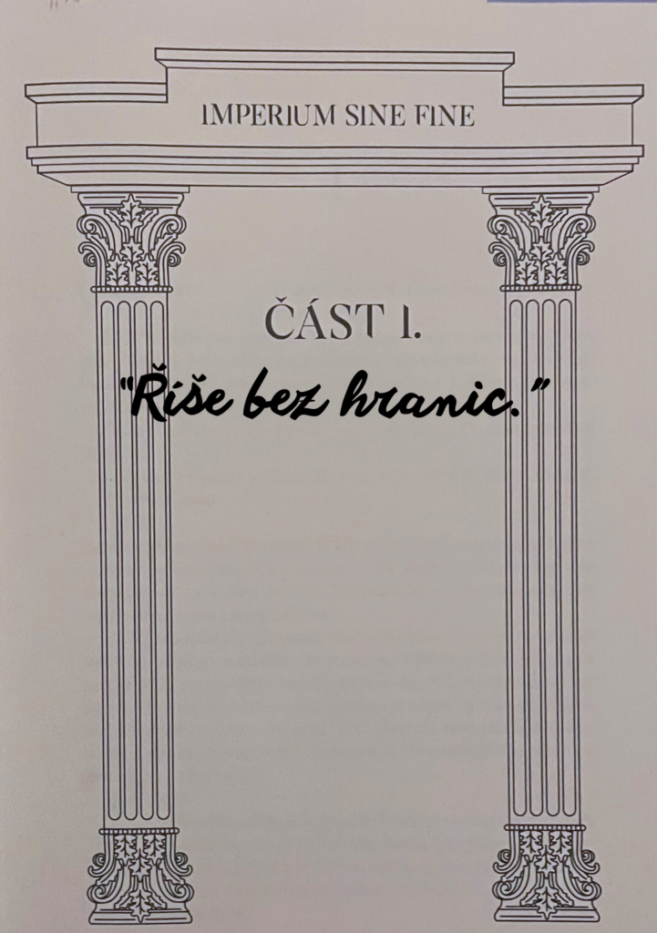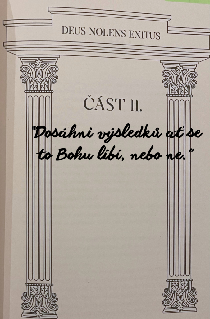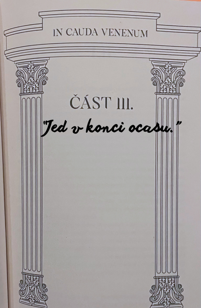 Kniha je rozdělená na tři části a každá je oddělná stránkou s tímto obrázkem a latinským citátem. Ty jsem si překládala.