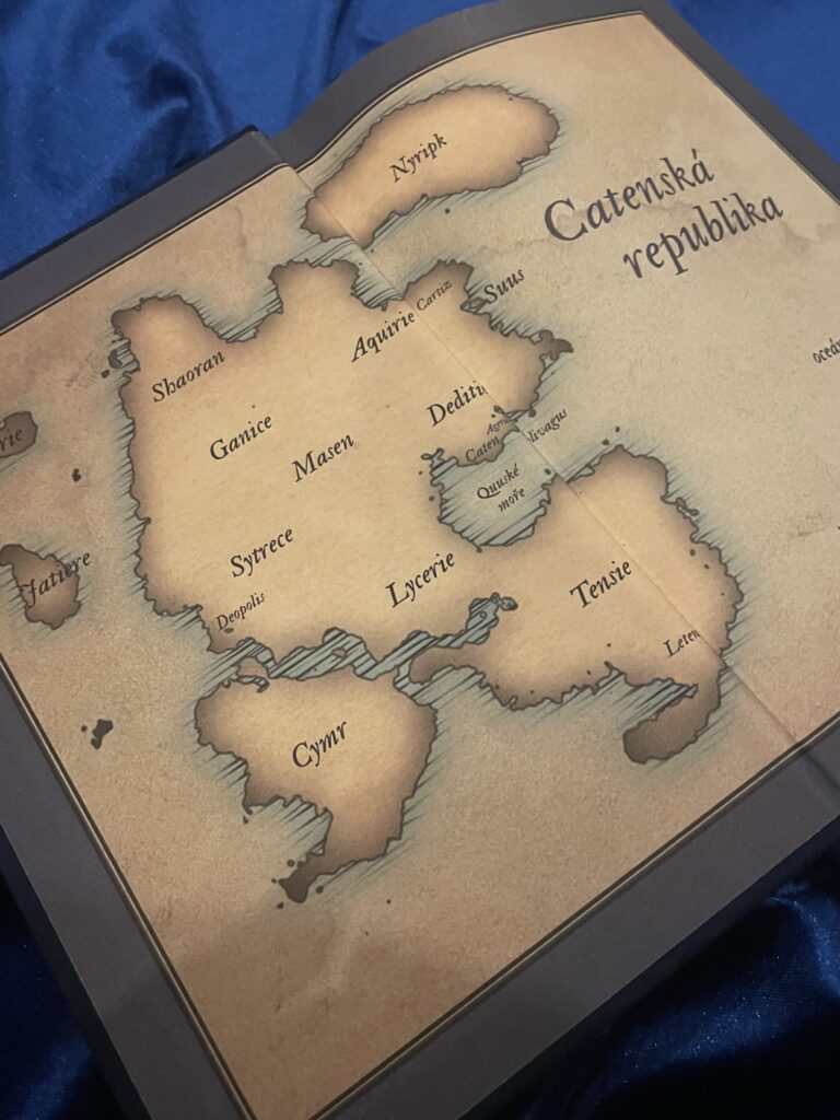 Přebal knihy je sice hezký, ale to, co se nachází pod ním, je nádhera. Než začnu vychvalovat příběh, ráda bych trochu ocenila vzhled knihy. Pod přebalem je potažená plátnem, na kterém jsou ražené zlaté detaily. A na předsádkách jsou pak mapy, vepředu je mapa Catenské republiky, vzadu ostrovu, na němž leží Akademie. Pro větší přehlednost v knize také najdeme žebříček Catenských hodností a úplně vzadu slovníček pojmů, postav a míst, které během příběhu potkáváme. Na to ale pozor, některé vysvětlení mohou obsahovat drobné spoilery. Vůle většiny se vám teď možná jeví jako komplikovaná kniha se světem s velmi složitým systémem, ale věřte mi, že tak to vůbec není. Sama jsem během čtení nakouknout do slovníčku vůbec nepotřebovala, jelikož příběh se nabaloval a rozrůstal o další informace postupně a nenásilně. Stejně tak si možná říkáte, že je Vůle většiny pěkná „bichle“. I tady vyvrátím jeden z vašich potenciálních strachů, kvůli kterému se čtením možná ještě váháte.