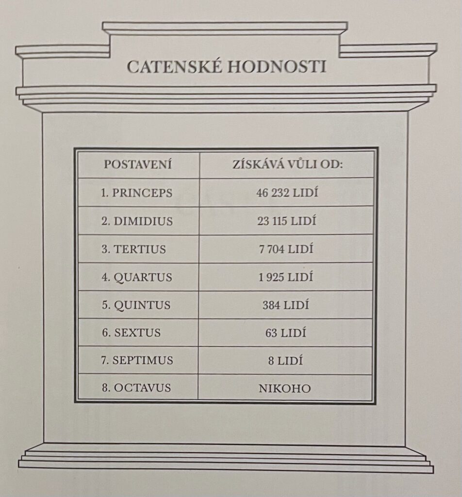 Spolu se sedmnáctiletým sirotkem Visem poznáváme od prvních stránek politický režim, který vládne v Catenské republice. Vis přišel před třemi roky o všechno – o rodinu, zázemí i celý svůj dosavadní život jak ho znal. Nějaký čas sám se svým žalem přežíval na ulicích, ale nakonec se na pokraji vyhladovění musel odebrat do sirotčince, kde alespoň dostal najíst. Musel si rychle vymyslet věrohodný příběh i novou identitu, protože kdyby přiznal kým opravdu je, byl by bez milosti zabit. A za ty roky se ve svých lžích opravdu zlepšil. Kdysi Catenská republika nebyla jednou velkou zemí, ale spoustou menších království a republik. Pak se však k moci dostali lidé, kteří jí nikdy neměli dost. Dobyli všechny okolní země a vyvraždili každého, kdo se jim postavil do cesty. Nešlo totiž jen o abstraktní představu moci, ale o moc fyzickou. V Catenu existuje žebříček hierarchie tvořený osmi stupni. Čím výše na žebříčku jste, tím více lidí vám odevzdává část své Vůle. S větším množstvím Vůle se stáváte silnějším, dokážete hýbat předměty i je nejrůzněji tvarovat a deformovat. Dokážete totéž, co byste dokázali s nějakou verzí magické moci. Pokud však nejste na nejvyšším stupínku hierarchie a nenosíte tak hodnost Princepse, jste nuceni také něco ze své Vůle odevzdávat. Když sami nějakou Vůli přijímáte, skoro nijak se to na vás nepodepíše. Jakmile jste ale na nejnižším stupni a nosíte hodnost Octava, od nikoho Vůli nedostáváte, pouze dáváte. A pak už se životem jen ploužíte. Catenské mocnosti se možná tváří, že z jejich vlády plyne pro každého nějaká výhoda, ale Vis, který už tři roky jenom lže a lže, dobře pozná lháře. Vykořisťování je v Catenu na denním pořádku a Visovi se mu zatím daří vyhýbat i za cenu ošklivých jizev. Odmítá odevzdávat Vůli, protože nechce dopadnout jako Octavové, ale také proto, že odevzdáváním by se z něj stal rovnocenný Cateňan. Přišel by o poslední střípek svého minulého života a naději na pomstu.