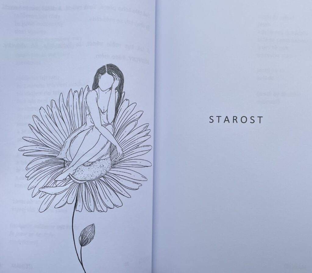 Veršové schéma je tu volnější. Jednotlivé verše se často nerýmují, což od poezie nevyžaduji, ale zde mi to z nějakého důvodu zcela nesedlo. Přesto jsem spokojená. Návaznost jednotlivých básní na sebe je velmi důmyslná a krásně dotváří větší obrázek. Našly se básně, které mě podobně jako trny růže bodly do srdce, a celkově má sbírka krásnou atmosféru. Tu doplňují ještě jemné ilustrace a atmosférická obálka. I když jsem Botaniku zlomeného srdce četla v parném létě, měla jsem pocit, že je chladné podzimní ráno, všude kolem mě je mlha a cítím začínající ranní mráz…