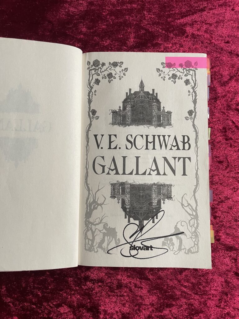 Než k nám do Prahy přijela na autogramiádu V. E. Schwabová, chtěla jsem stihnout přečíst některé z jejích knih. A protože jsem věděla, že její nejslavnější pěti set stránkový Neviditelný život Addie La Rue nestihnu, rozhodla jsem se pro tří set stránkový Gallant. Udělala jsem tak moc dobře, protože jsem se do Schwabové zamilovala ještě více, než u první knihy, kterou jsem od ní četla (u Křehkých vláken moci, recenze je tady). V Gallantu předvádí svůj velký talent, cit pro práci se slovy a jazykem a rozehrává příběh plný poetiky a překvapivých odhalení. Jen z toho všeho asi malinko zapomněla dotáhnout zápletku.