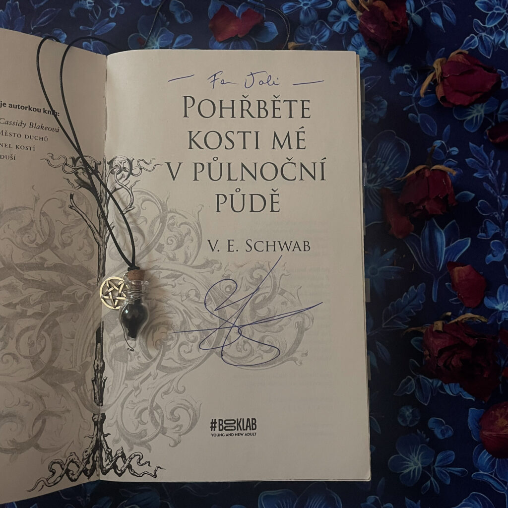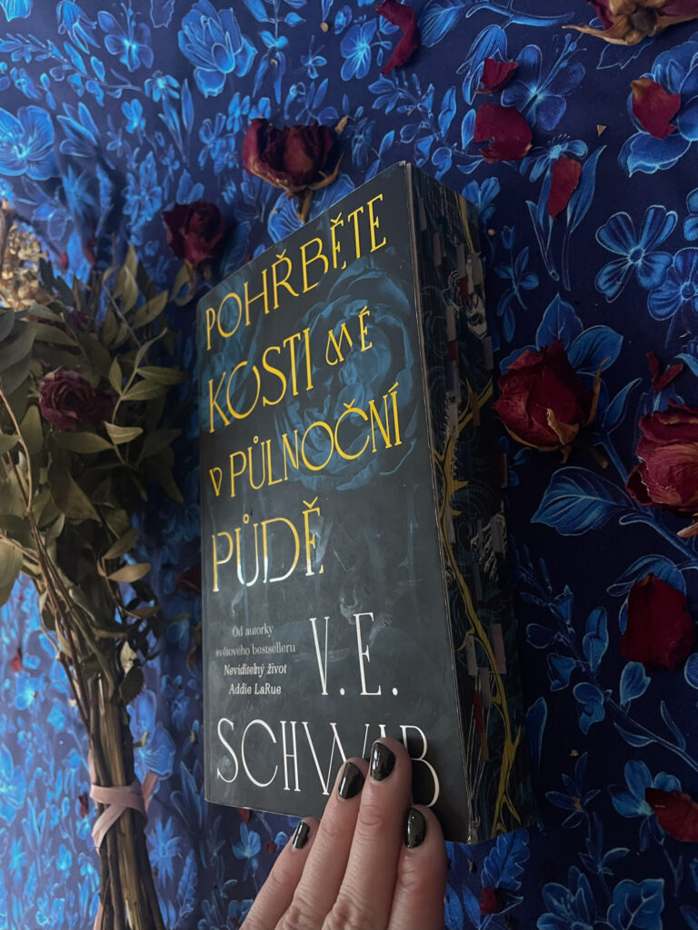 Novinku V. E. Schwabové, u nás vydanou nakladatelstvím Booklab, jsem si samozřejmě nemohla nechat ujít. Díky propagačnímu turné k této knize Victorie navíc přijela do České republiky a tak mám její knihu i podepsanou (o setkání s Victorií jsem psala zde). Pohřběte kosti mé v půlnoční půdě měla být úplně jiná než autorčina předchozí tvorba. Temná, temnější než cokoliv co kdy napsala, s postavami pohybující se v morálně šedé zóně a konající i docela nepěkné věci. Také se vůbec poprvé pustila do tématiky upírů a byť na besedě slibovala, že upíři nebudou dominantním tématem, mám pocit, že trochu mlžila. Upírství a upíři byli tím, kolem čeho se celá kniha točila a rozhodně nešli přehlédnout. Tím neříkám, že mě toto téma v knize nebavilo, cítím však povinnost uvést na pravou míru Victoriino tvrzení, které jsem od ní přebírala a dál předávala. Její zpracování upírů bylo ovšem fascinující, vůbec ne romantické, jako v mnohých současných knihách s upíry. Bylo surové, temné, poetické a velmi originální. A jak že fungují upíři podle V. E. Schwab? Protože každý autor je pojímá trochu jinak. Richelle Meadová jim například říká vampýři a Stephanie Meyerová je nechává chodit na střední školu. V. E. Schwabová se držela spíše klasického pojetí – jak vás jednou upír kousne, stanete se také upírem. Pokud vás ale kousne a nepřestane z vás pít, zabije vás. Její upíři nemohou jíst lidské jídlo, mají neustále chuť na krev a sužuje je hlad, který je také často používán jako metafora pro bažení a touze po něčem. Mají určité schopnosti související s ovlivňováním vůle jiných osob a je jim nepříjemně na slunci. A každý jeden upír zná básničku o kostech pohřbených v půlnoční půdě, z kterých vyroste divoký květ…